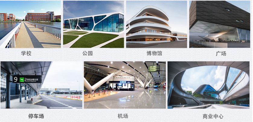 學校、公園、博物館、廣場、停車場、機場、商業中心