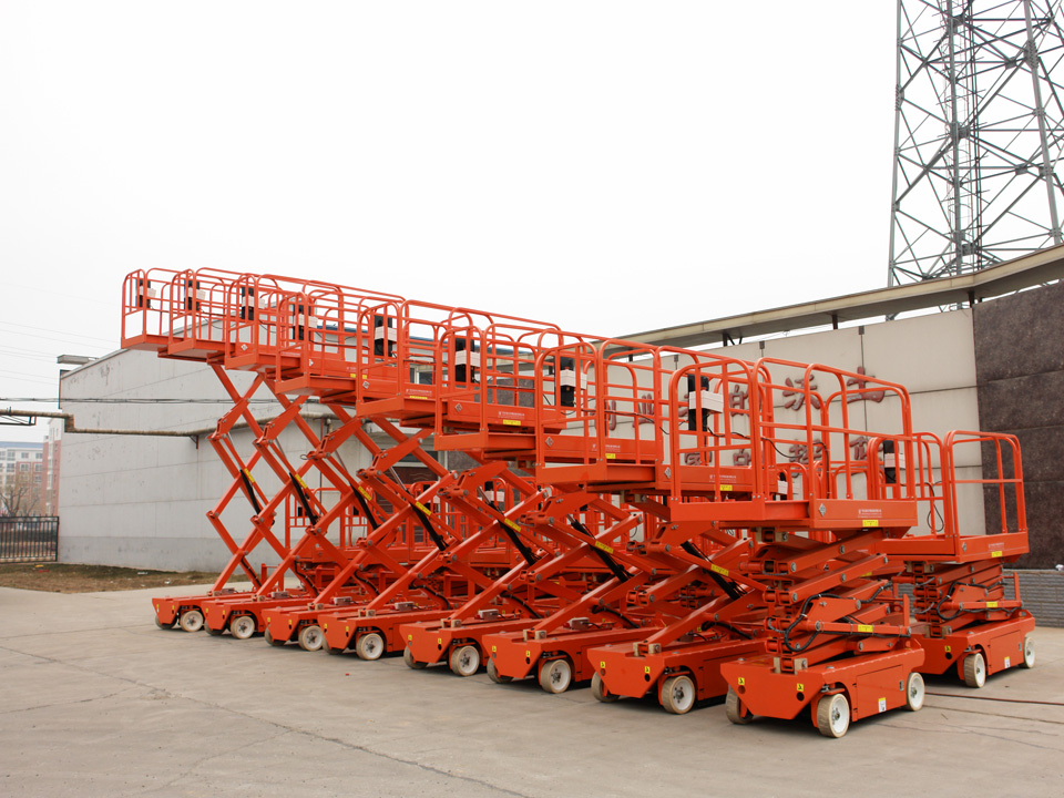 剪叉自行走式升降平臺,機動性強,工作范圍大,如公路交通、路燈照明、工程搶險等。它的動力可以使用汽車發(fā)動機或者直流電池、使用安全可靠。