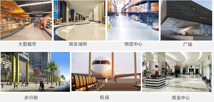 大型物流配送中心、工礦企業(yè)、學(xué)校、體育中心、廣場、公園、博物館、汽車站、火車站、飛機場、停車場、碼頭、大型生活小區(qū)、街道、商業(yè)中心、步行街等。