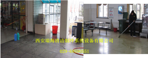 問(wèn)題:瓷磚或石材地面,地面經(jīng)常有水漬,污漬,現(xiàn)有方式難以滿足高峰期的地面干凈清潔